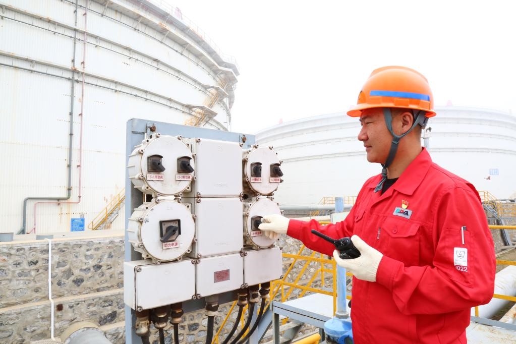 李云龙在罐区现场检查配电箱。图片来源:新华网