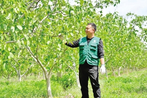 程子昂在核桃园查看树木长势。图片来源:晋中日报