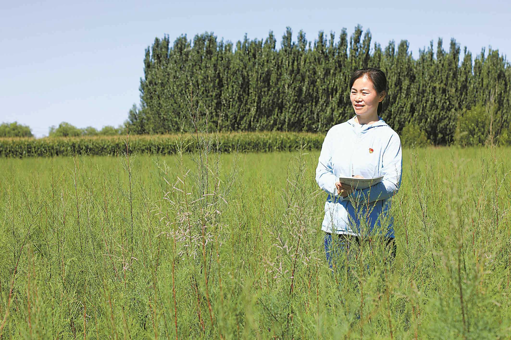 每年压沙造林时节,她都要和同事一起吃住在沙窝,一住就是一个多月,每天还要徒步20多公里到现场巡回指导。