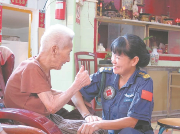 敬老慰问活动中,一位老人为陈素珍点赞。图片来源:福建日报