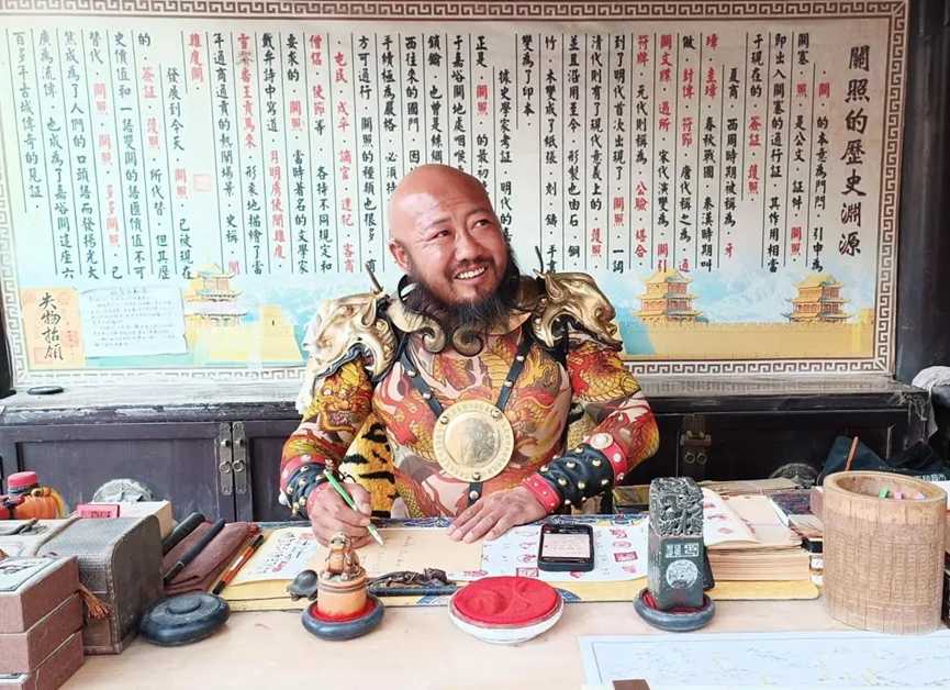 为了让游客有沉浸式的仿古通关体验,李森不仅手写“关照”,还从“行头”上“全副武装”。他留起了络腮胡,专门研究有关古代甲胄的资料,为自己量身打造了仿制的明朝将军甲胄。李森还研读历史资料,热心为游客们讲解各种历史知识。