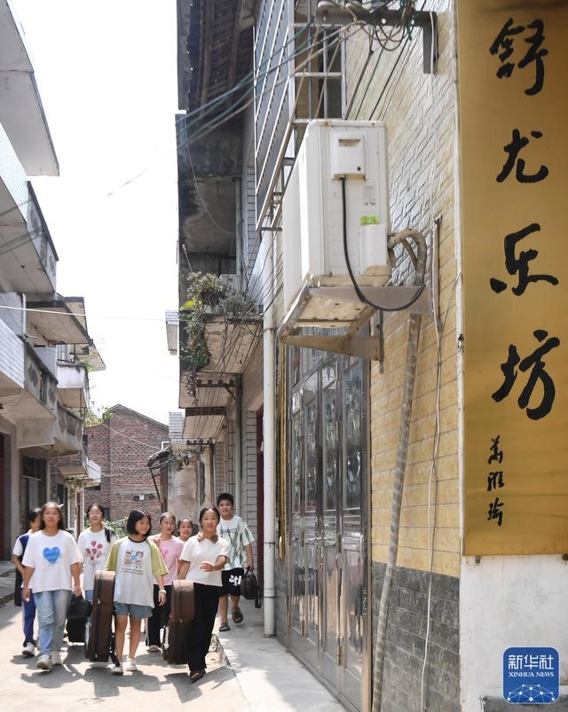 学生们成群结伴到枧头洲村舒尤乐坊上课。图片来源:新华社