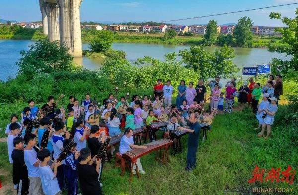 说罢,李舒尤老人为孩子们示范竹笛演奏,一个个悠扬的音符,从渌水河畔飘向远方。一位老人与一群农村孩童的故事,正在千年律动的民乐中续写……