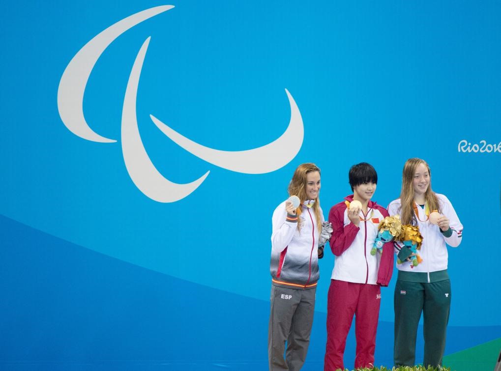 徐佳玲(中)获里约残奥会女子100米蝶泳S9级冠军。图片来源:新华网