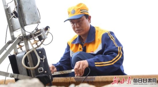 黄涛进行钢轨探伤仪器测试。(图片来源:每日甘肃网)