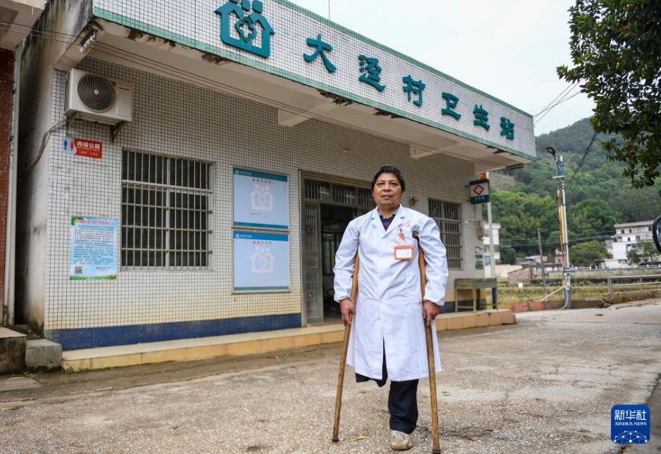 他是大迳村卫生站的医生郑仁才。初中时,他因意外受伤右腿截肢,自此再也没能离开拐杖。1994年12月,23岁的他成了大迳村唯一的医生,开始了他30年拄拐行医的漫漫人生路。