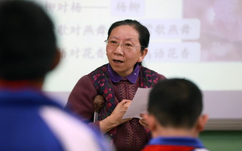 “古对今,圆对方。严寒对酷暑,春暖对秋凉……”清晨,稚嫩的童声,伴随着“叽叽喳喳”的鸟鸣回荡在校园。这里是甘肃省白银市白银区水川镇白茨滩小学。教室里,一名拄着双拐、步履蹒跚的老师带领几名一年级学生进行早读。这名行动不便的老师叫张兰萍,是白茨滩小学一名普通而又特殊的“全科”老师。四十年来,她以坚韧不拔的精神和无私的奉献,成为了许多孩子心中的榜样。