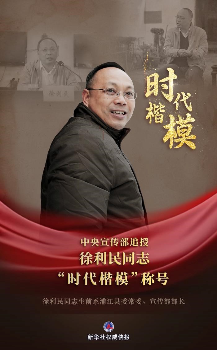 中共中央宣传部追授徐利民同志“时代楷模”称号海报(图片来源:新华社)