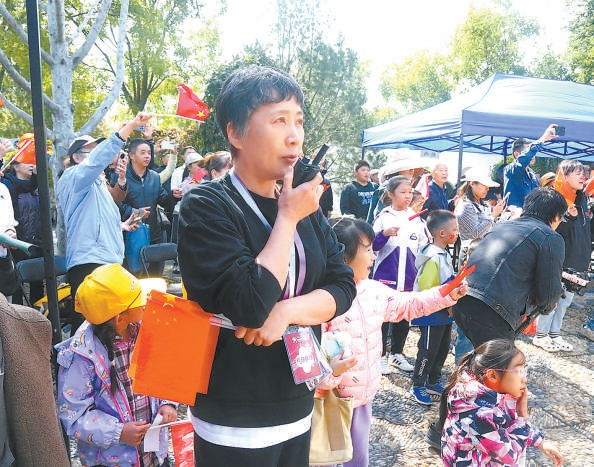 园区内人声鼎沸,节日气氛浓厚。在忆江南园中,四川省南充市川剧团的精彩表演赢得了观众的阵阵掌声。当演出结束,剧团负责人提议加唱一曲《五星红旗迎风飘扬》时,现场观众的热情瞬间被点燃了,台上台下大家一起挥舞着小国旗高声合唱,气氛感人。这样的场景杨战经历了太多次,依然心潮澎湃。