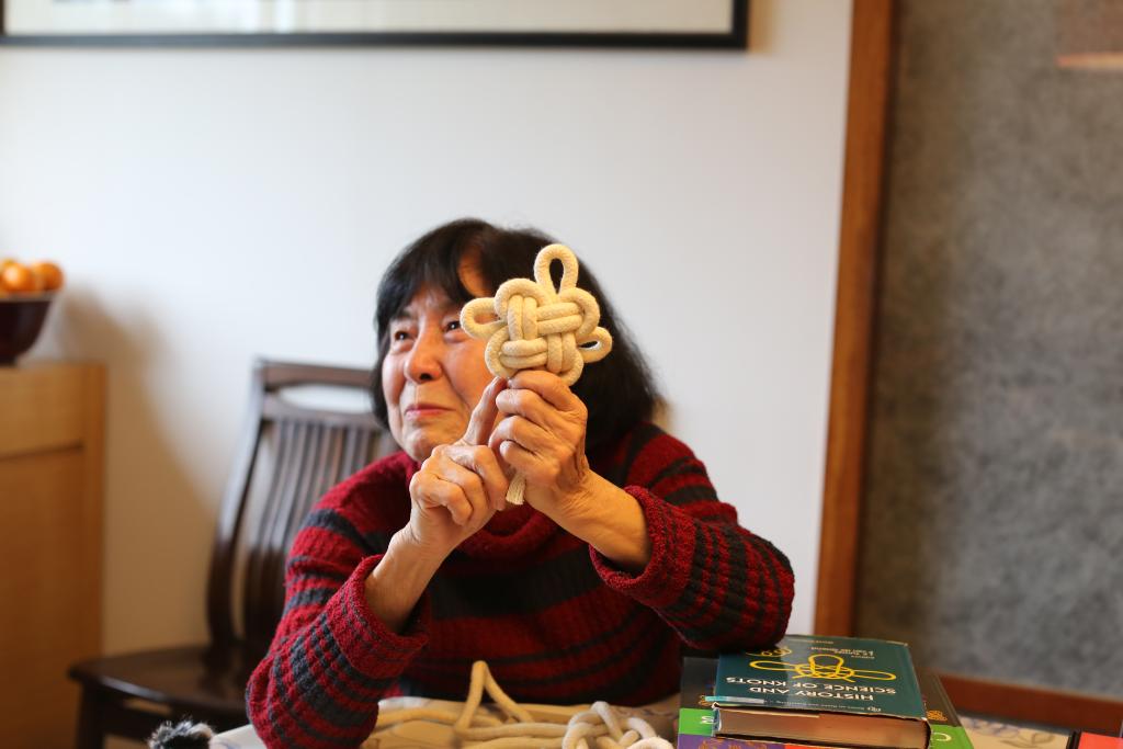 几十年来,她带着自制中国结前往多国办展,出版中文、英文、德文的结艺书籍十余册,使更多人了解、认识中国结。